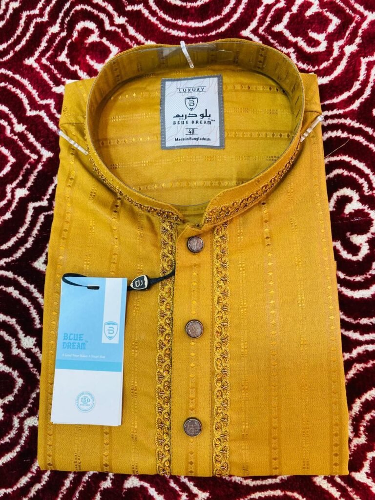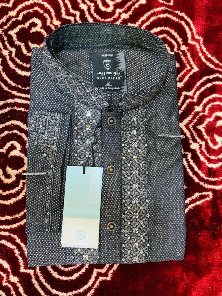 Made from breathable, high-quality cotton, this panjabi ensures comfort all day long while maintaining a crisp, polished look. The Mandarin collar adds a modern flair, while the button-front closure provides convenience and ease of wear. The premium fabric from Pakistan is soft yet durable, ensuring that this panjabi remains a staple in your wardrobe for years to come.