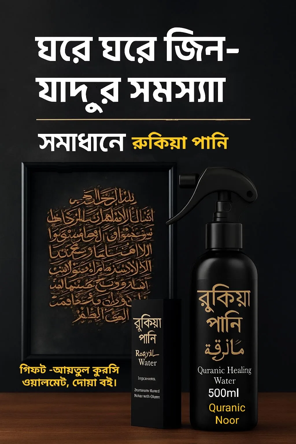 🔸 ঘরের জন্য রুহানিয়াত ও হেফাজতের উপহার রুকিয়া পানি ও আয়তুল কুরসি ওয়ালমেট।